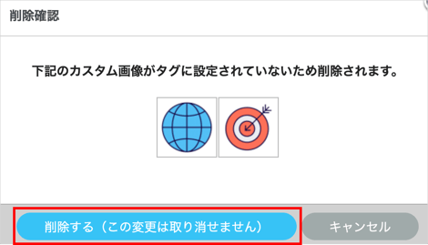 スポットタグに設定されていない画像は、更新ボタンを押した際に「削除確認」がて、「削除する」をクリックすると削除できます。