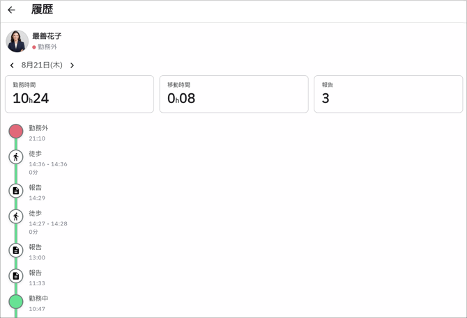 ユーザー名やユーザーアイコンをクリックすると、1日の活動の履歴を確認できます。