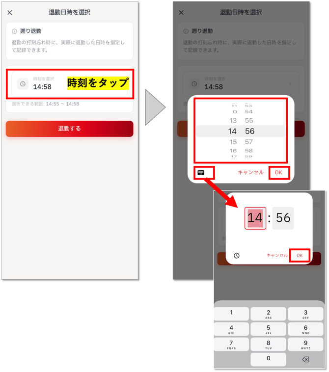 時刻をタップして、退勤時刻を編集します。