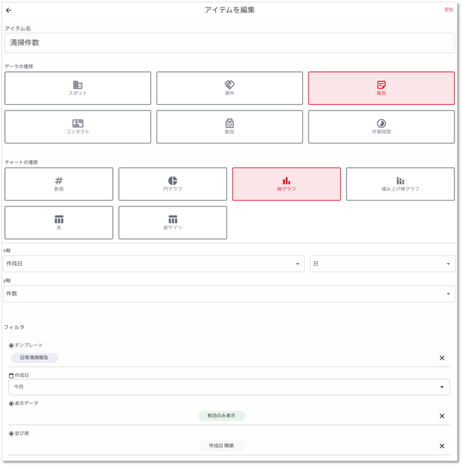 - ダッシュボードの「【清掃】今月」ビューをご利用予定の企業様