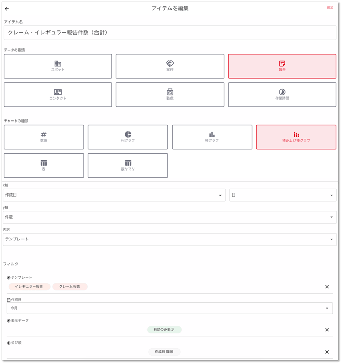 - アイテム名:クレーム・イレギュラー報告件数(合計)