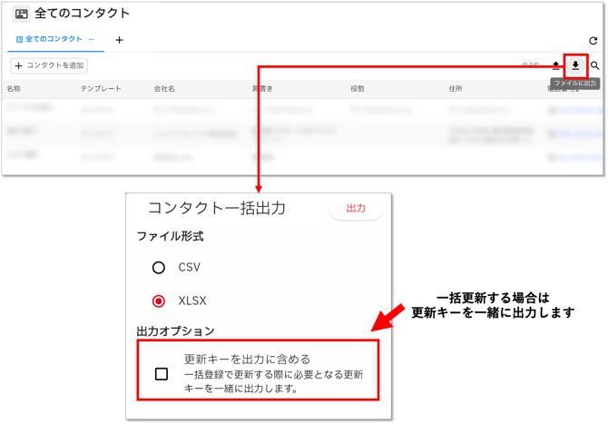 ※更新キーは、コンタクトの一括更新を出力する時に使います。