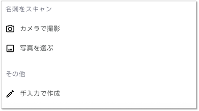 - 名刺をスキャン(カメラで撮影、写真を選ぶ)※Premiumプランをご契約の方