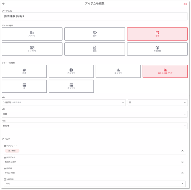 - 訪問件数(今月)もしくは 訪問件数(先月)