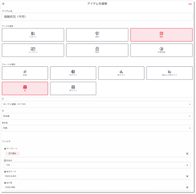 - アイテム名:接触状況(今月)