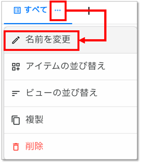 - ビュー名が「すべて」で作成されるので、「…」から「ビューの名前を変更」を選択して、ビュー名を「【訪問営業】案件状況」に変更します。