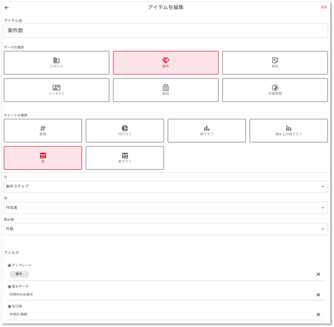 - アイテム名:案件数