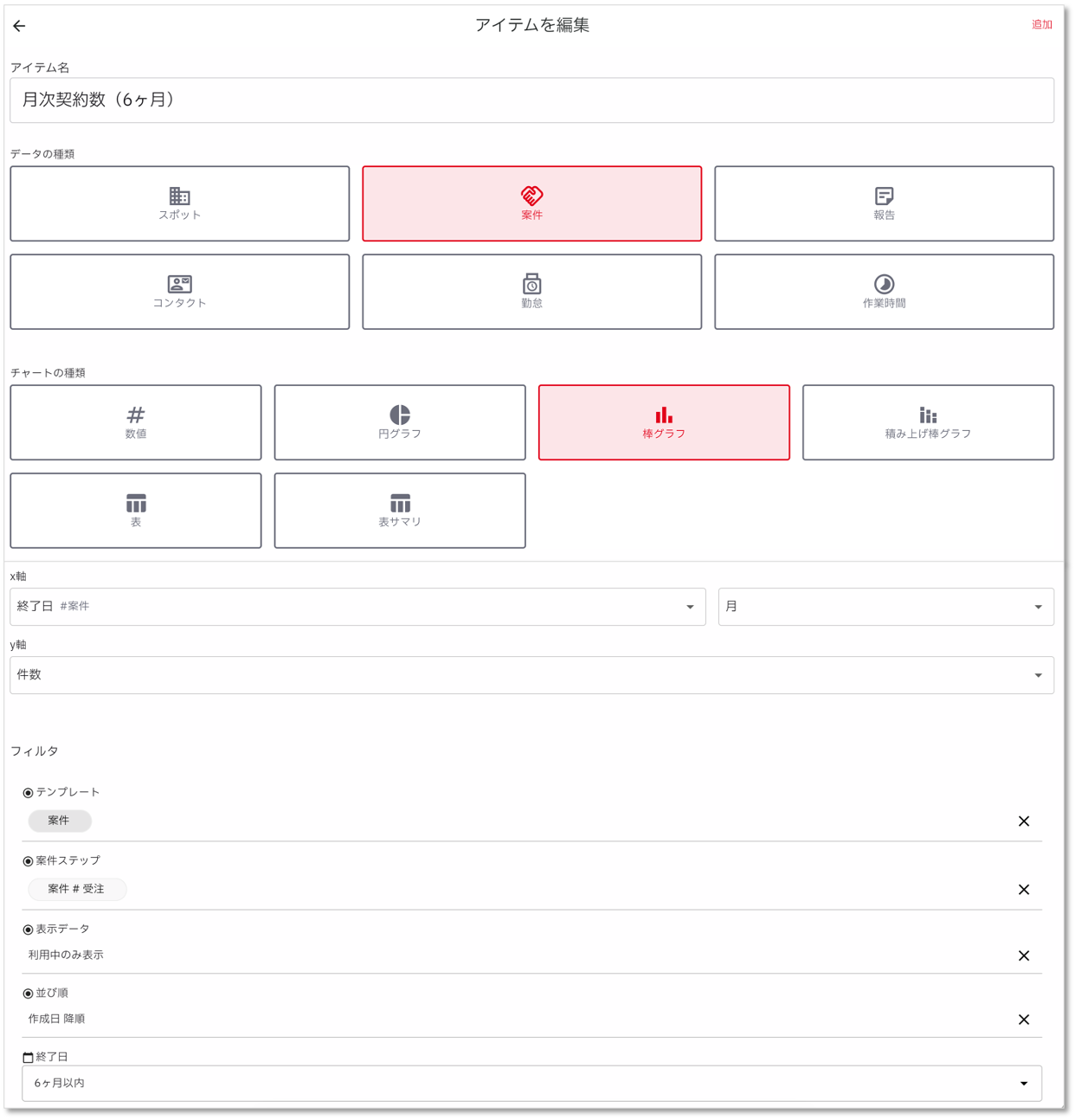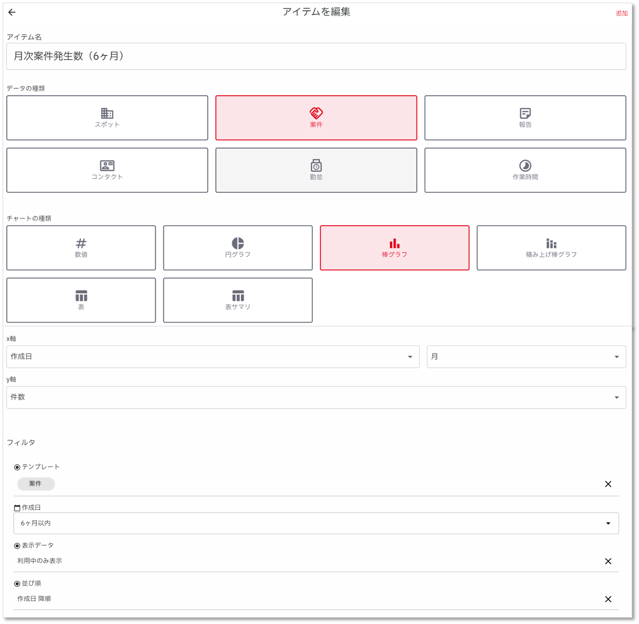 - アイテム名:月次案件発生数(6ヶ月)