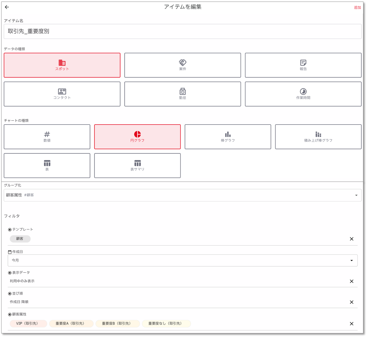 - アイテム名:取引先_重要度別