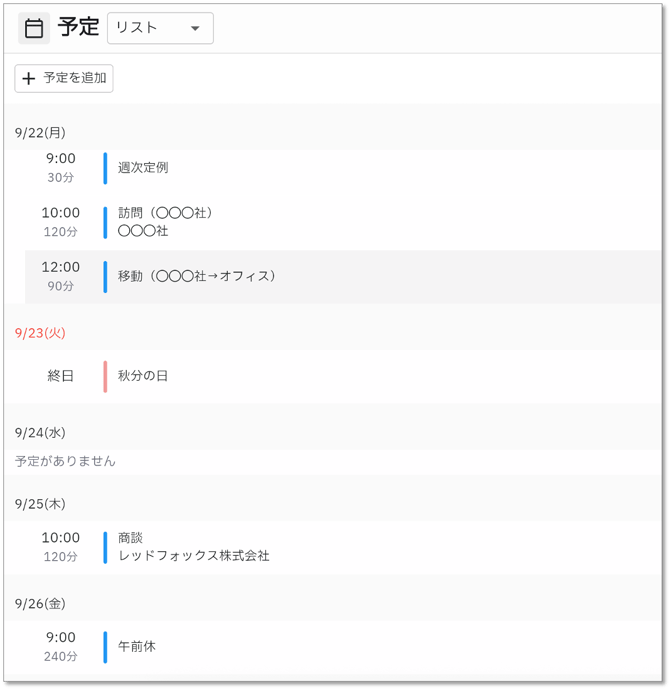 - リスト:予定を一覧で表示します。
