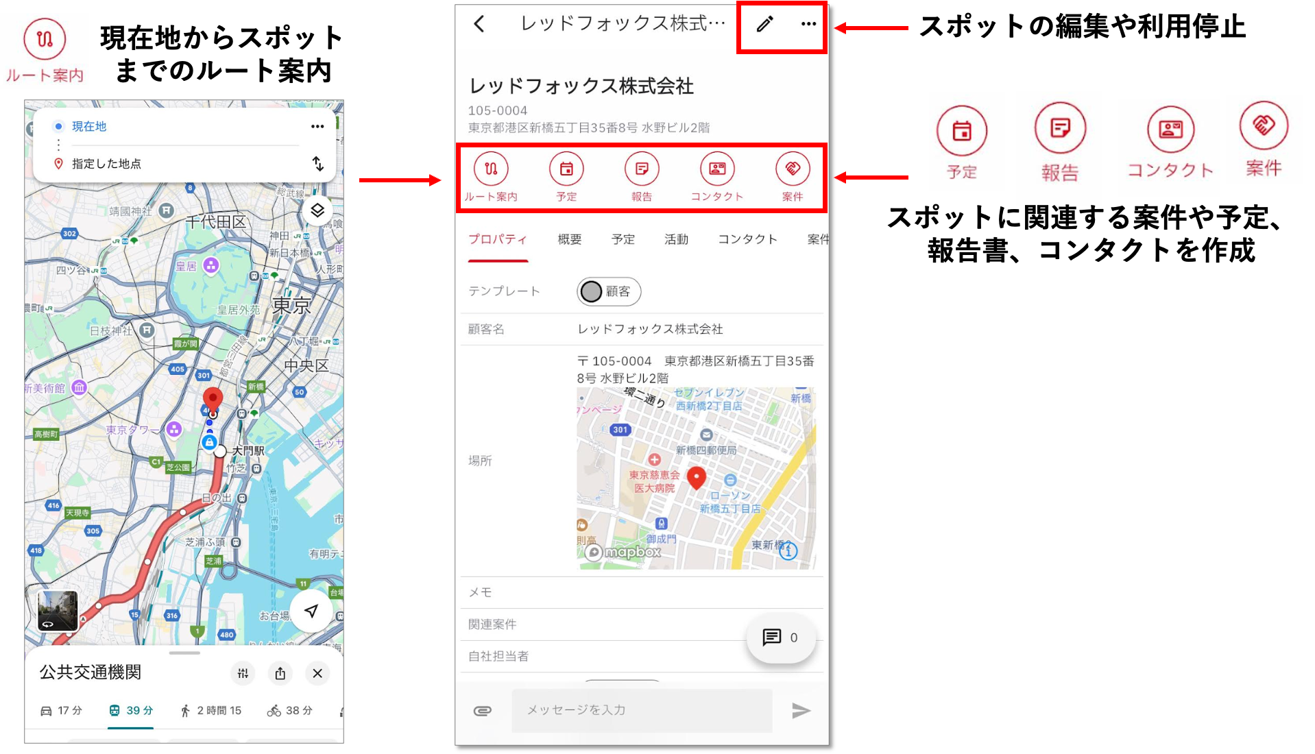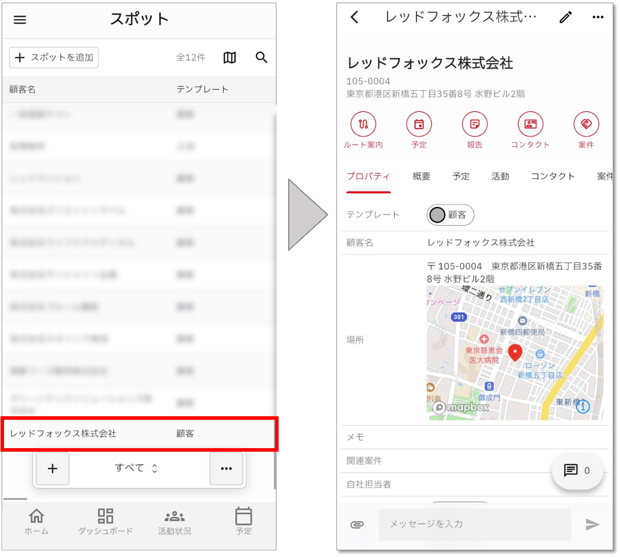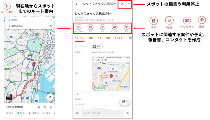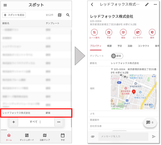 cyzen proの「スポット」は、cyzenの「スポット」が進化した概念で、場所に限らず「顧客・店舗・建物・エリア・設備」などを幅広く登録できます。