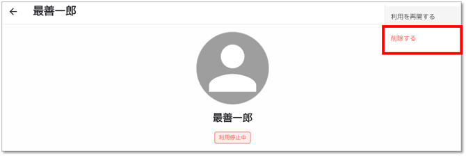 - 利用停止中ユーザーの右上「…」から「削除する」を選択します。
