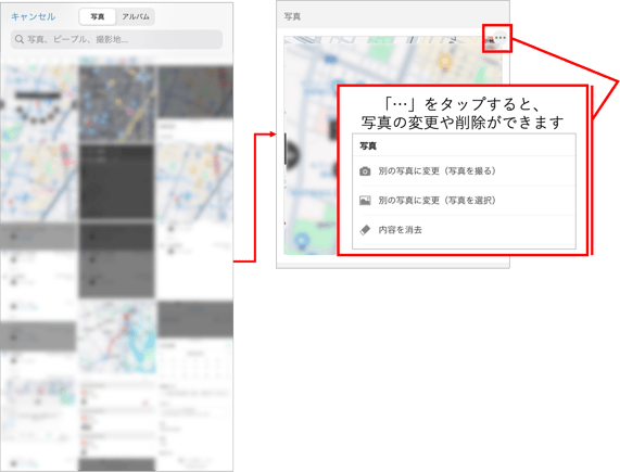 - 写真を選択:ライブラリの中から添付したい写真をタップします。