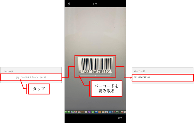 バーコードを読み込むことができます。読み込みができない場合は、手動入力も可能です。ただし、設定によっては読み込める最大件数が設定されていたり、手動入力が許可されていない場合があります。