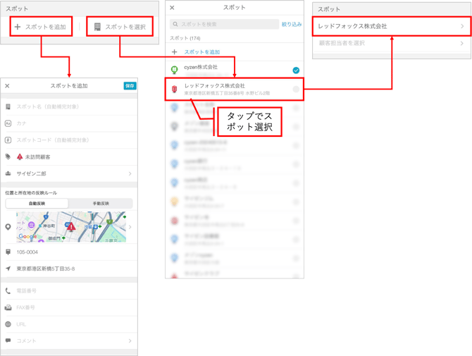 ■スポットの追加や選択