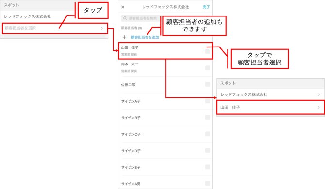 スポットの顧客担当者を選択できます。追加も可能です。
