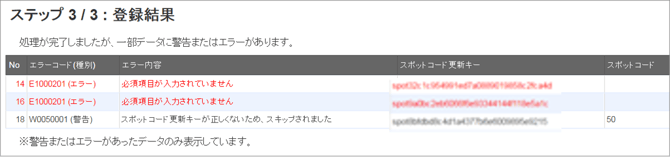 ※スポットコード一括更新時のエラーについてはこちら