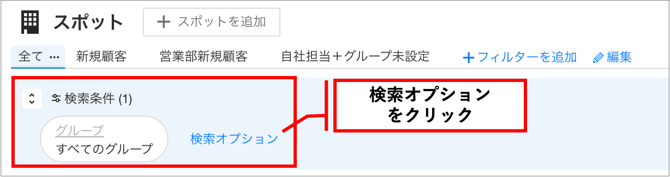 - スポット画面上部の「検索条件」の「検索オプション」から条件を指定します。