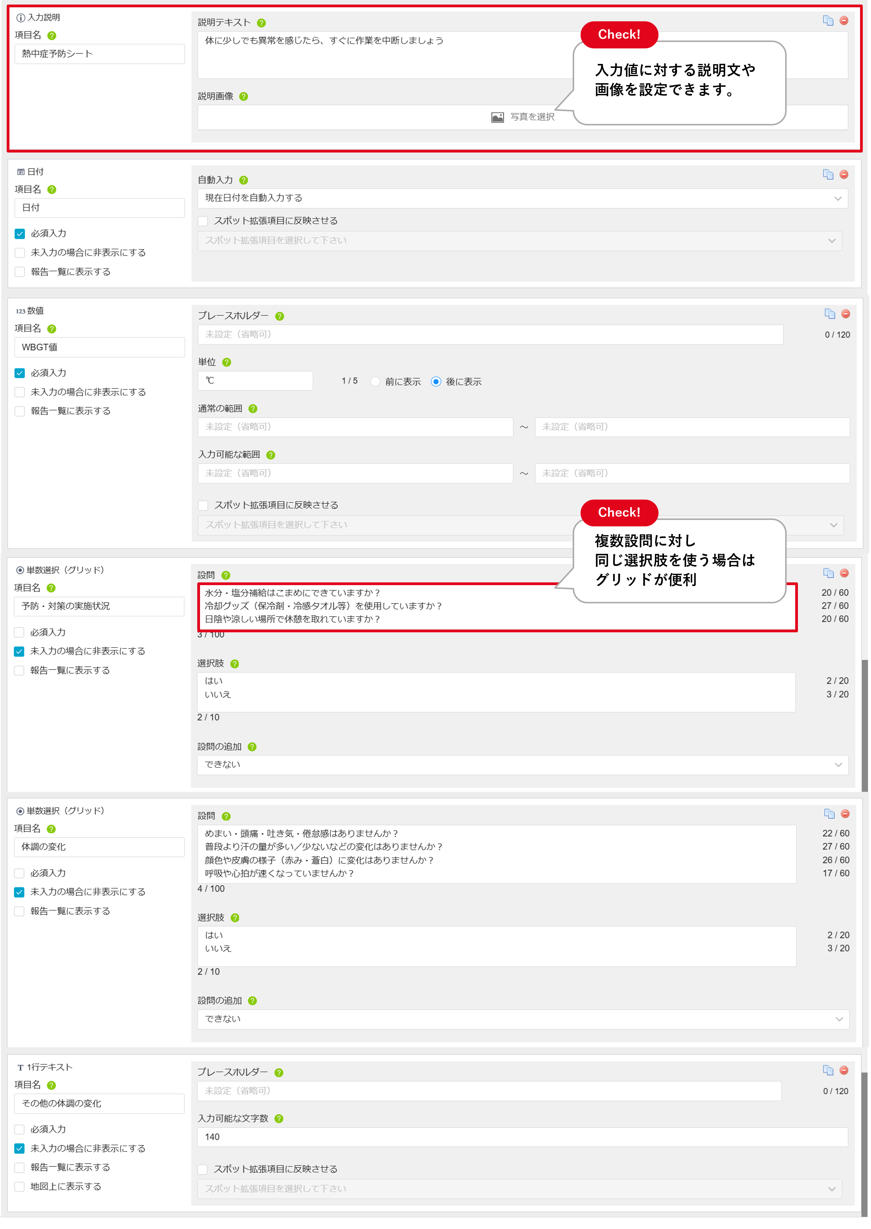 業務開始時点での健康状態を把握し、熱中症リスクの高い人を早期に把握する。